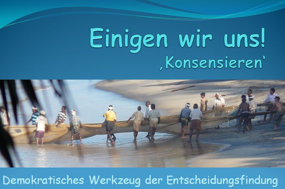 Systemisches Konsensieren ist ein besonderer Weg der gemeinsamen Entscheidungsfindung oder Entscheidungsvorbereitung. Als „Konsensieren“ bezeichnen wir den kreativen Prozess der Suche nach der bestmöglichen Näherung an den Konsens, also nach der größtmöglichen Übereinstimmung unter Menschen. „Systemisch“ nennen wir den hier beschriebenen Prozess deshalb, weil er systembedingt zu einem konstruktiven und kooperativen Verhalten aller Beteiligten führt, ohne von ihrem guten Willen oder sonstigen Eigenschaften abhängig zu sein.